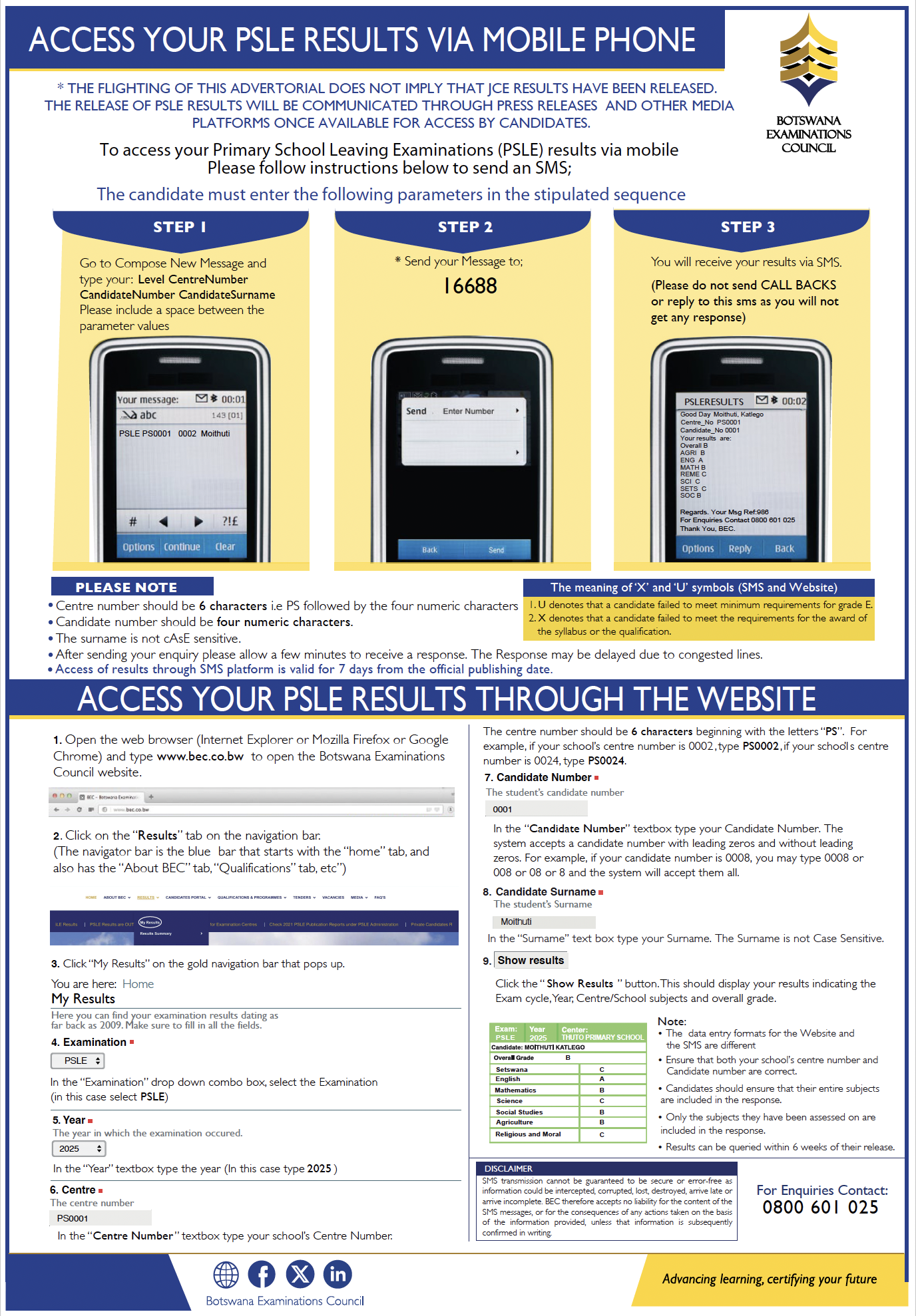 • Letter from Customary court (Kgosi/Chief) or letter from Department of Civil and National Registration office for Surname difference (For instance, Marriage certificate)